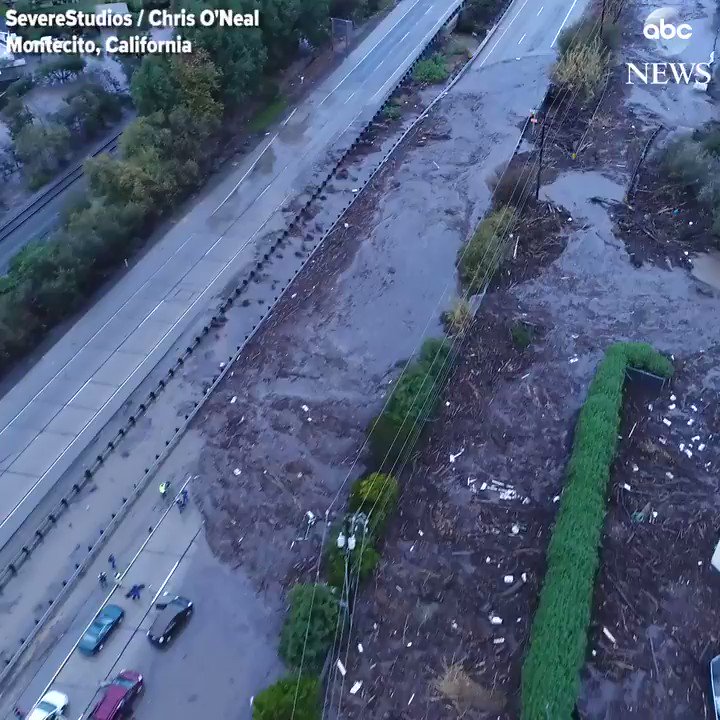 Ο αυτοκινητόδρομος 101, κατά μήκος των ακτών της Καλιφόρνιας στον Ειρηνικό Ωκεανό, είναι αδιάβατος για περίπου πενήντα χιλιόμετρα. Η τηλεοπτική παρουσιάστρια Έλεν ΝτεΤζένερις, η οποία κατοικεί στο Μοντεσίτο, ανέβασε στη ροή της στο Twitter μια φωτογραφία από ένα πλημμυρισμένο τμήμα του: «Αυτό δεν είναι ποτάμι», έγραψε. «Αυτός είναι ο αυτοκινητόδρομος 101 στη γειτονιά μου αυτή τη στιγμή. Το Μοντεσίτο χρειάζεται την αγάπη σας και την υποστήριξή σας».
